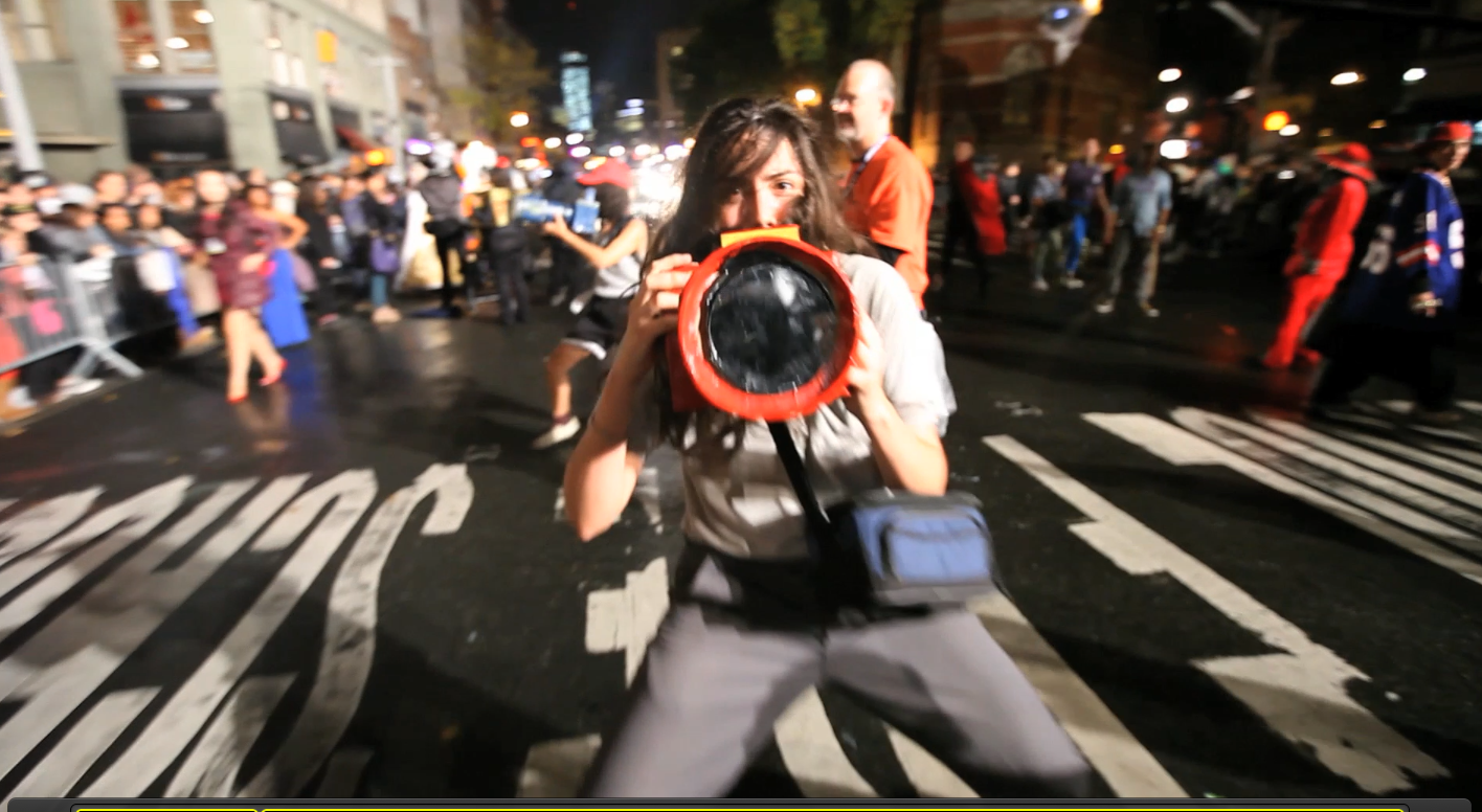 Cuando vivía en Nueva York, mi amiga Red y yo nos dimos cuenta de que en muchos de los desfiles públicos que celebran el cuerpo como el de Halloween o el Desfile del Día de la Sirena, había un montón de fotógrafos realmente agresivos que nos tomaban fotos a nosotras y a otras personas sin nuestro consentimiento, haciéndonos sentir incómodas y por lo tanto menos celebradoras del cuerpo. Decidimos asistir a desfiles como "Fotógrafos de Mirada Masculina" y tomar fotografías de otros fotógrafos agresivos. Estas pequeñas interacciones provocaban conversaciones con los fotógrafos sobre el consentimiento, la representación y la soberanía sobre nuestra imagen personal en espacios públicos.